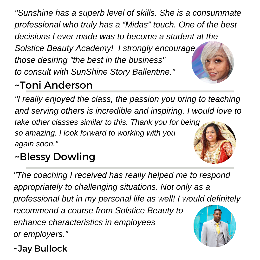 What People Are Saying About SunShine Story Ballentine & Solstice Beauty Academy
